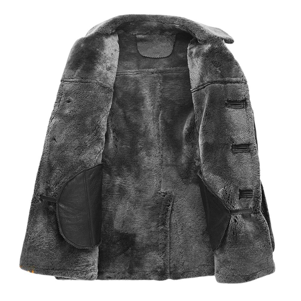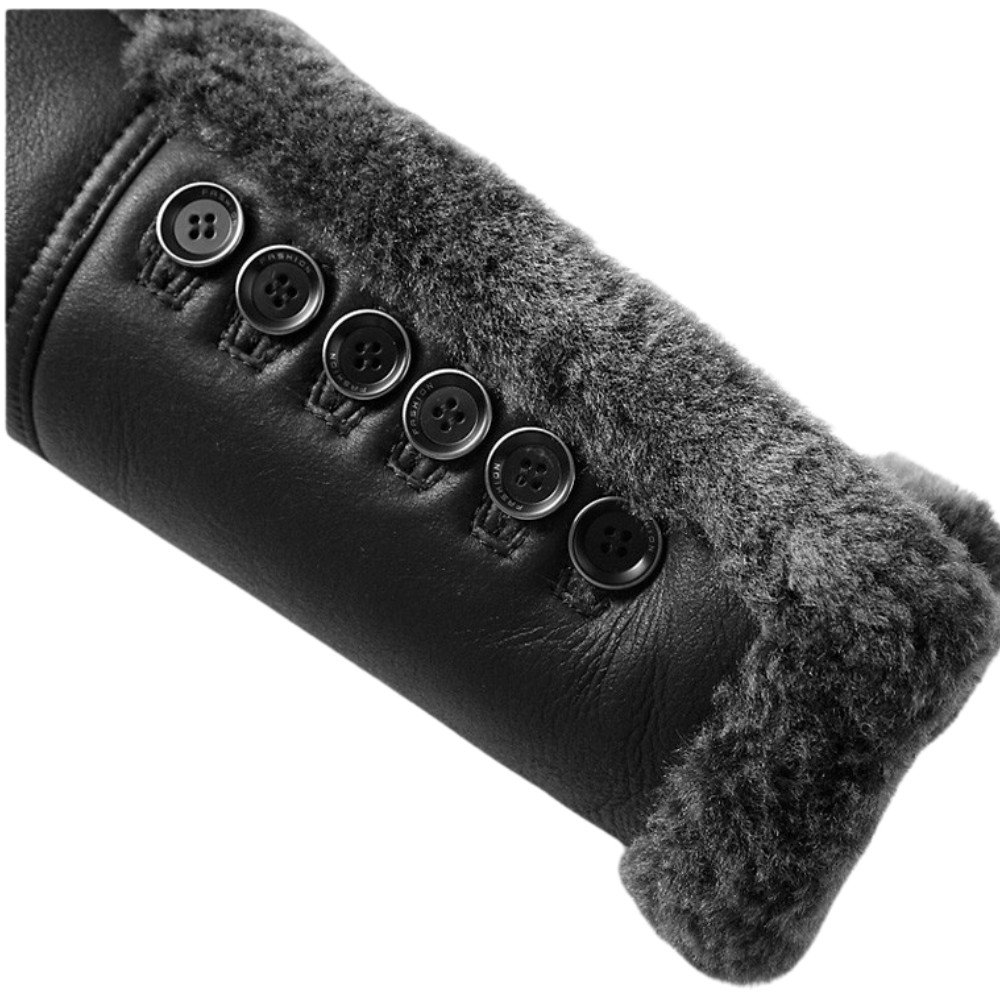 The Jared black fur leather coat transitions seamlessly between formal and casual settings. Pair it with tailored trousers and a shirt for a sharp, professional look, or wear it over jeans and a sweater for a relaxed yet sophisticated vibe. Its versatility ensures it’s a go-to piece for any wardrobe.