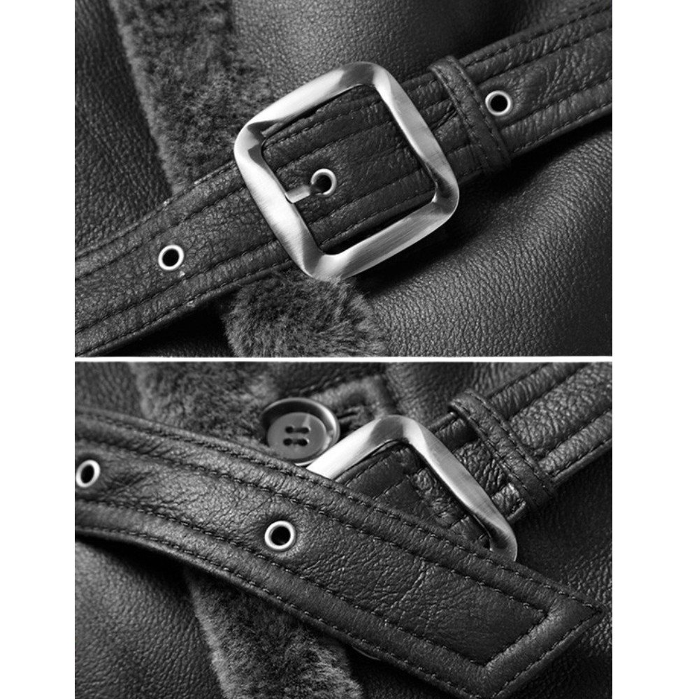 This black faux fur leather coat isn’t just about style—it’s also designed with practicality in mind. Key features include:
