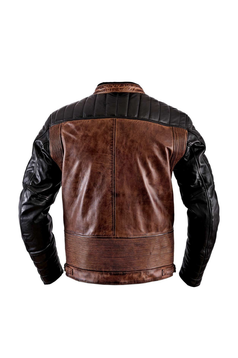 Men’s Cafe Racer Dark Brown and Black Motorcycle Leather Jacket