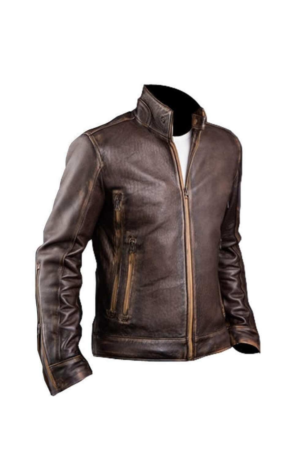Men’s Retro Cafe Racer Biker Distressed Brown Leather Jacket