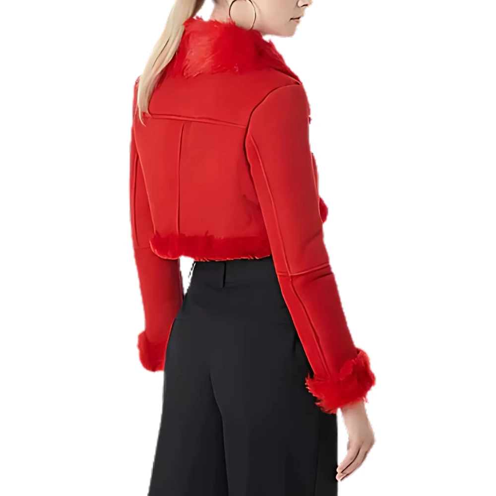 Designed in a vibrant, sharp red hue, this jacket captures attention effortlessly and adds a pop of color to any outfit. Its chic, cropped cut offers a modern, edgy silhouette that complements any look, from jeans and tees to dresses and skirts. The flattering, form-fitting design makes it a versatile piece that can elevate both casual and formal outfits.